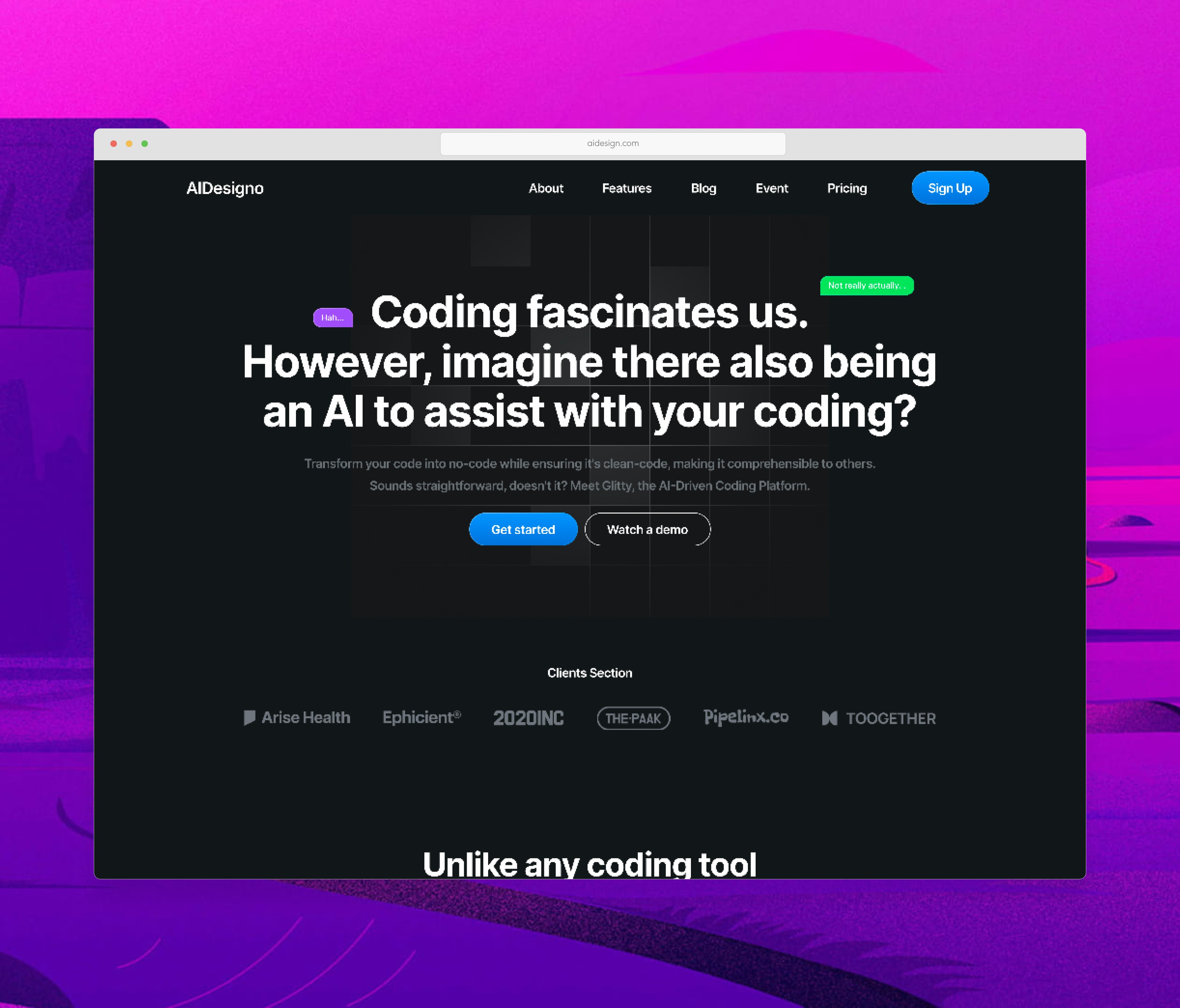 Whether you're a seasoned designer or a complete novice, our intuitive tools and AI-driven features make creating websites, apps, and interactive content a breeze. Say goodbye to the limitations of traditional coding and hello to limitless creativity with AIDesigno.
